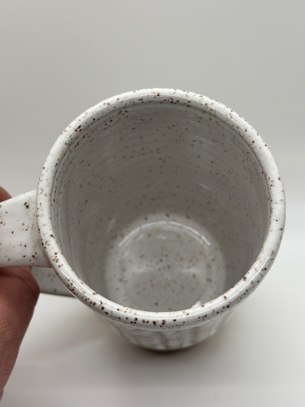 Tall carved white mug